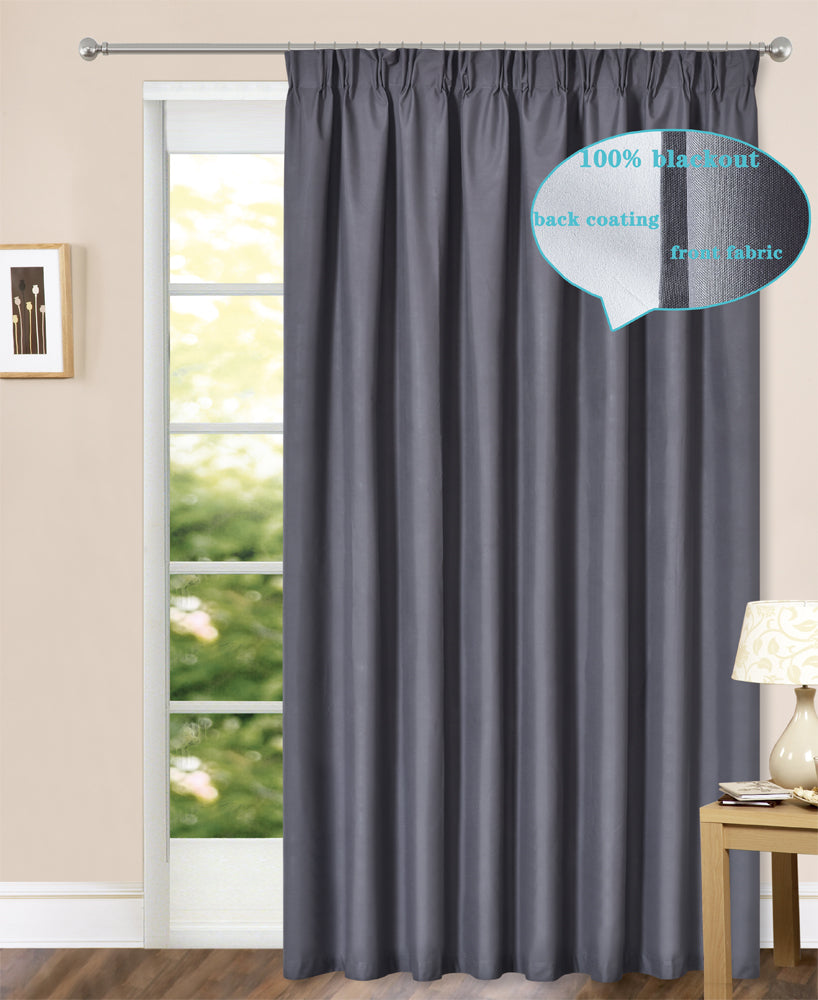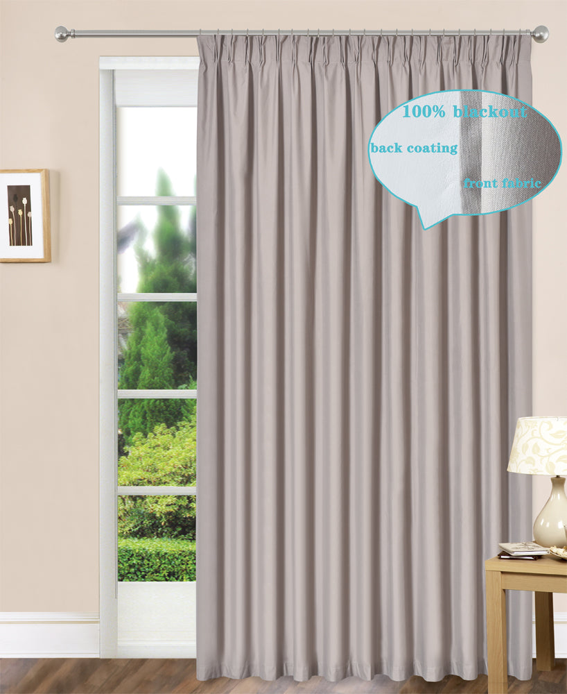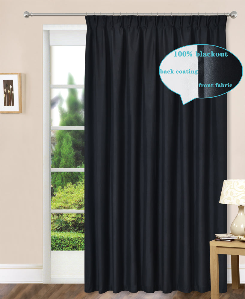 100% Blackout Pinch Pleat Curtains Microfiber Coated Drapes Thermal Insulation Room Darkening - 2 Panels