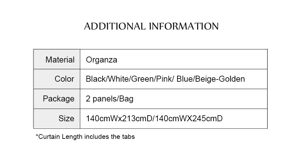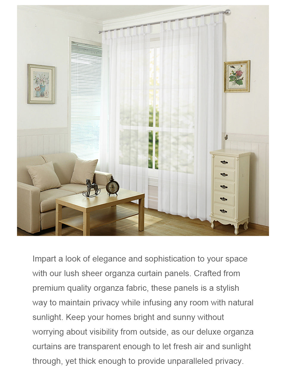 · Crafted from high-quality organza, they add a touch of sophistication to any room,