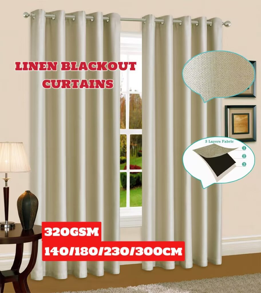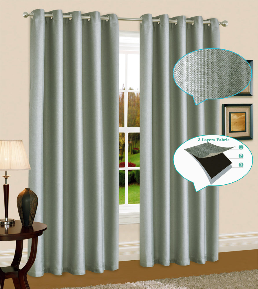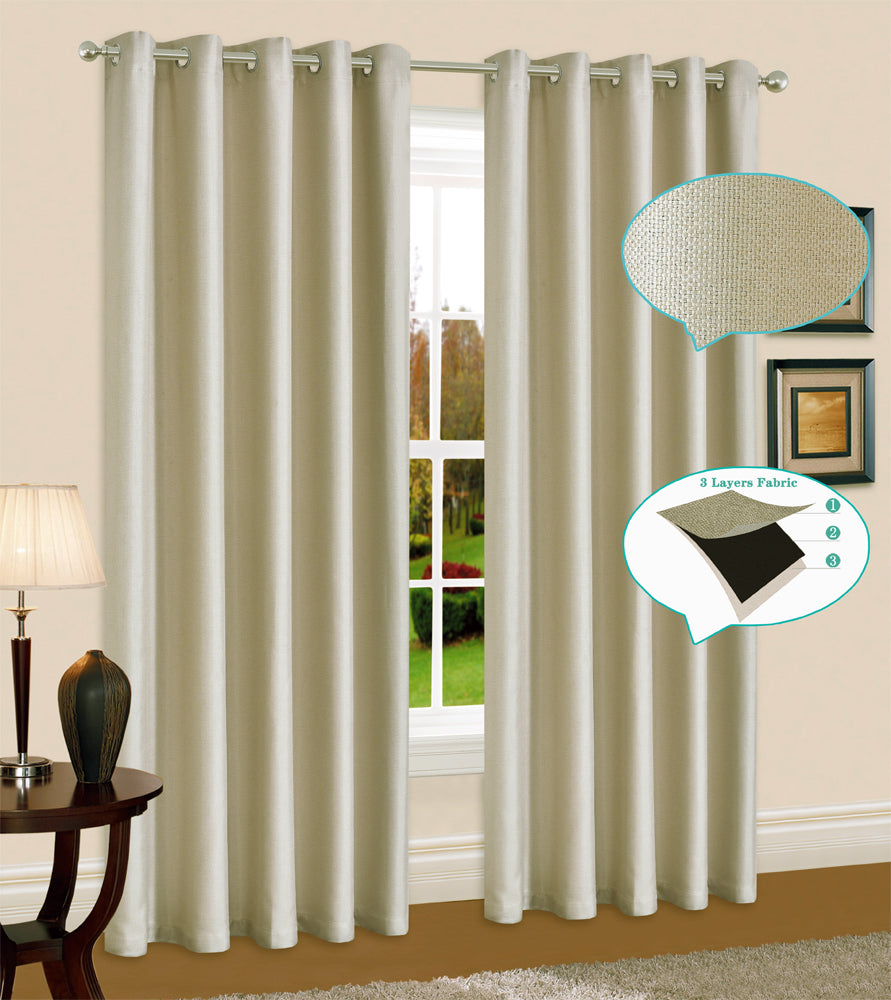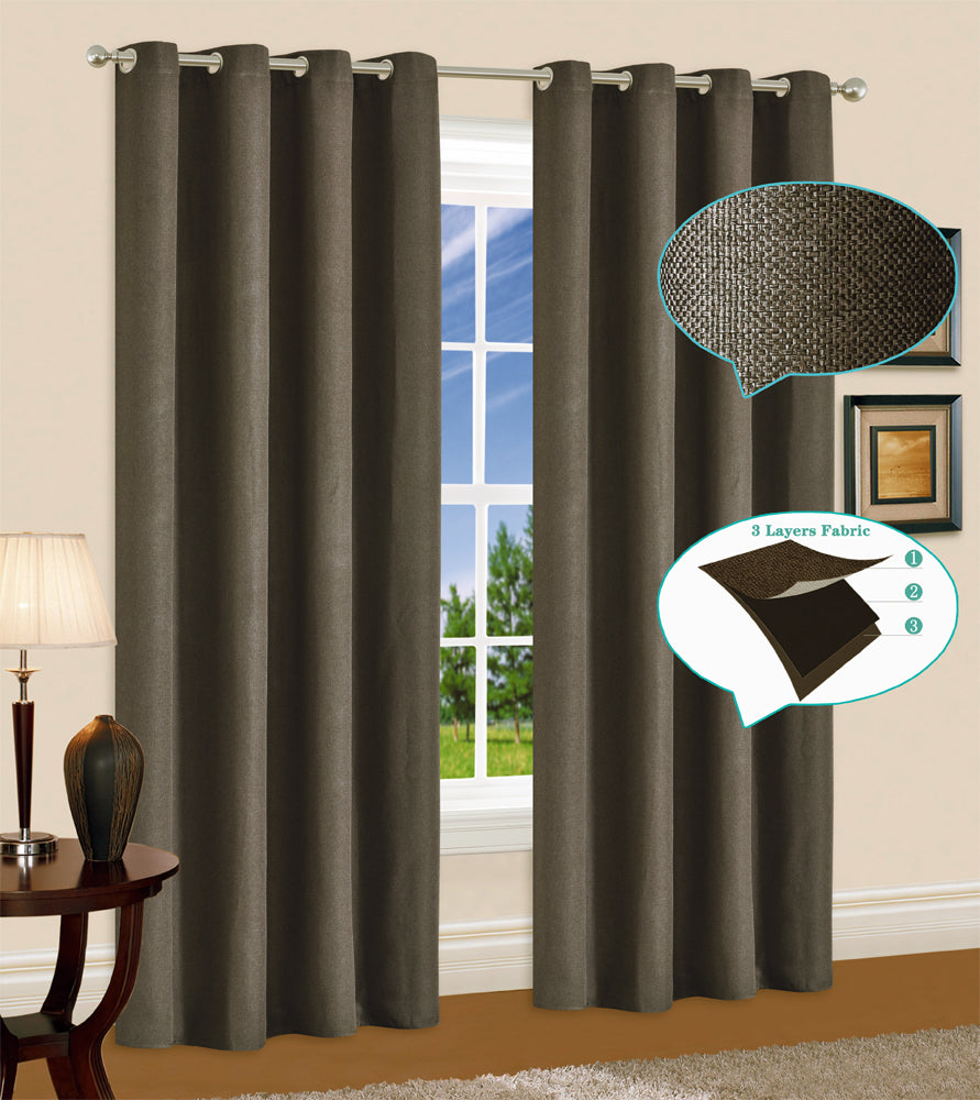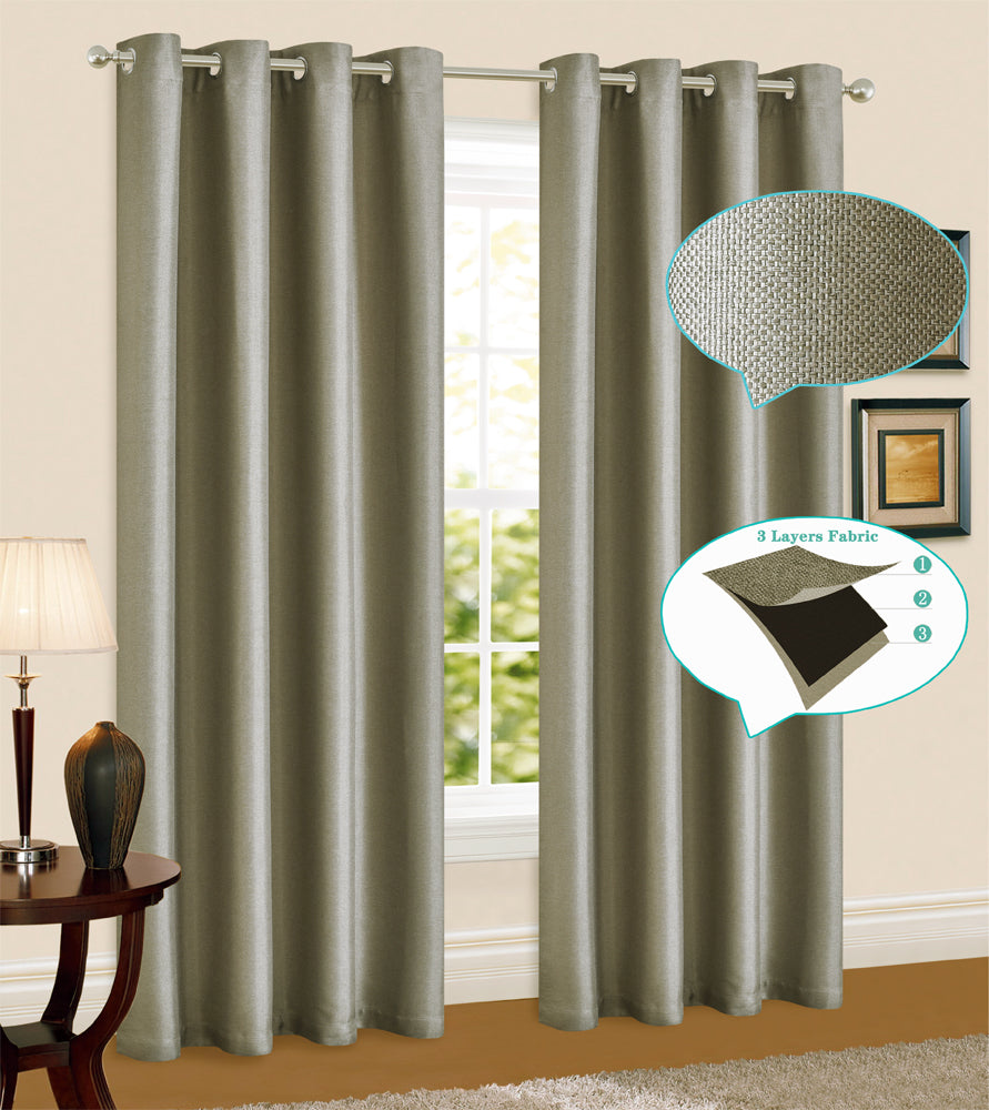Linen Blackout Curtains Eyelet 3-Layer Woven Blockout Drapes Textured 1Panel