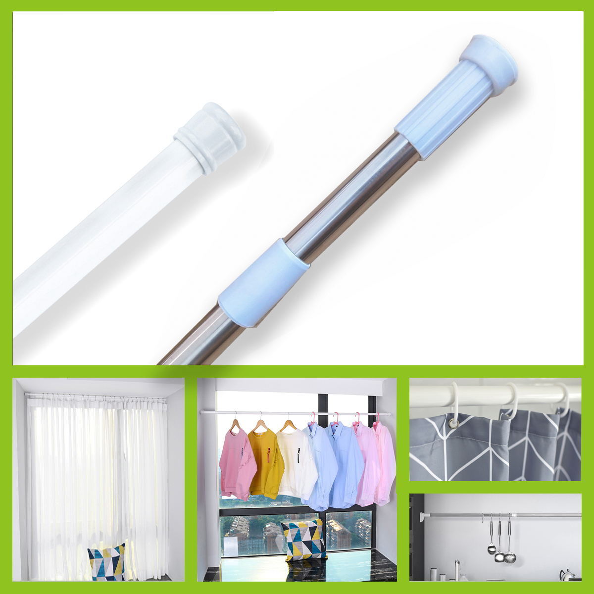 - Enhance your bathroom with the Multi-function Spring Tension Rod. Its extendable and easy-to-install design, coupled with sturdy construction, provides a reliable and stylish solution for hanging your shower curtain.