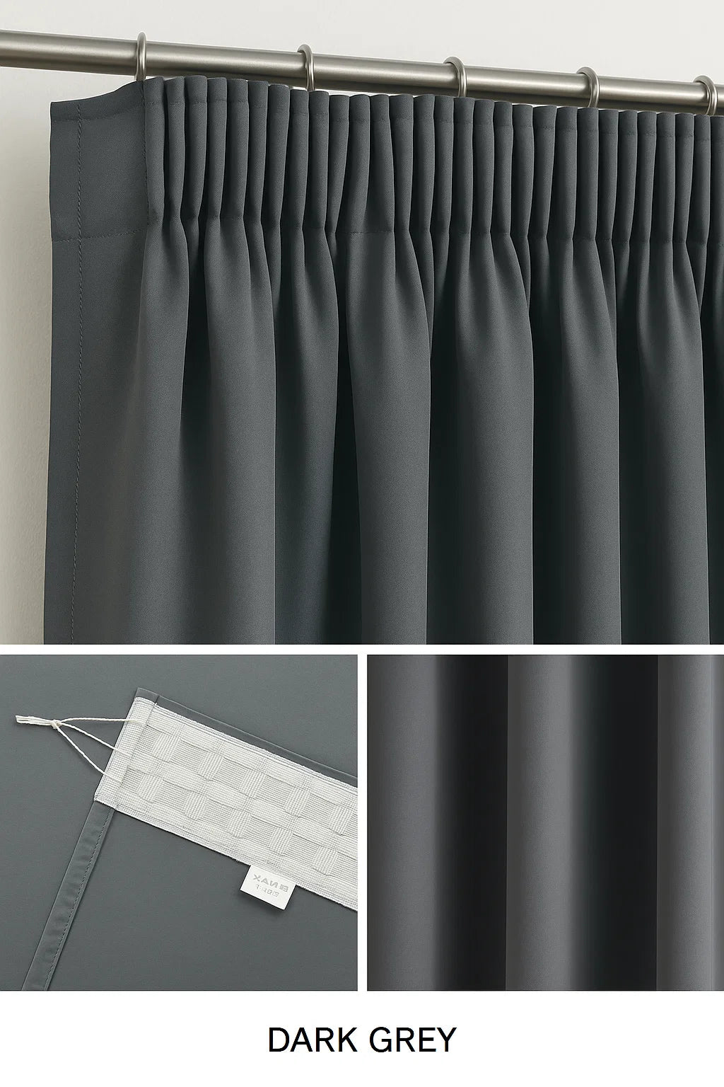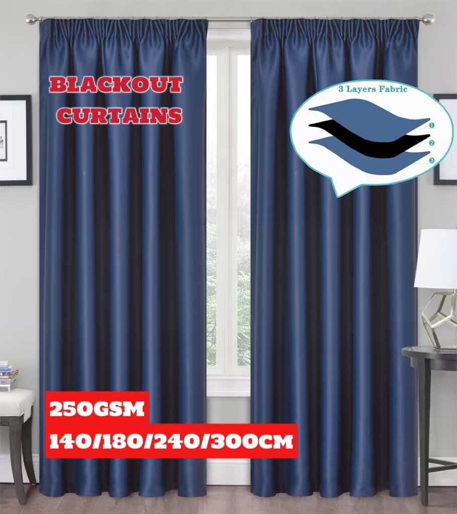 Blackout Curtains Pencil Pleat 3-Layers Woven Blockout Drapes Room Darkening 213cm Drop 1 Panel