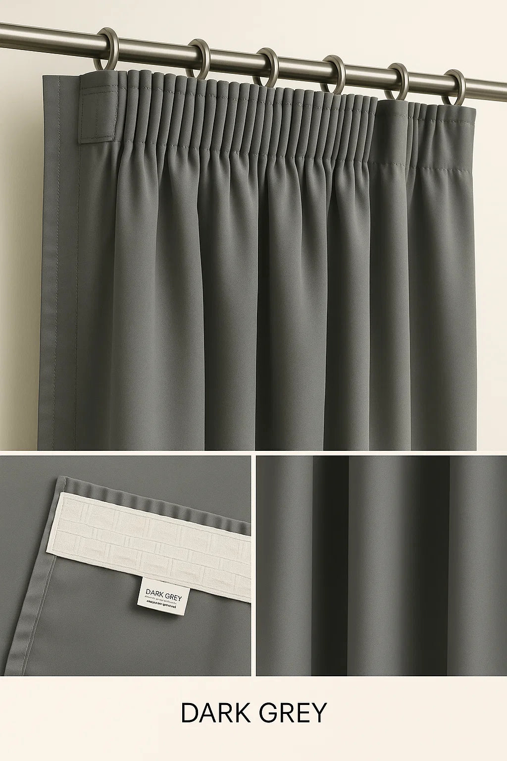 - 2*140cm Panels (2 panels total width 280cm) for windows 120cm to 160cm